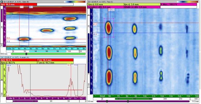 Por sua vez, a análise de corrosão é feita através do processo de ensaio por ultrassom, que utilizam técnicas altamente modernas chamadas de ultrassom automatizado (PHASED ARRAY). Essa técnica emprega os mesmos princípios físicos do Ultrasssom Convencional, com transdutores (cabeçotes) de múltiplos cristais que "pulsados" de forma ordenada produz uma varredura completa da região de interesse, ao mesmo tempo em que realiza o registro contínuo de todo o processo realizado.