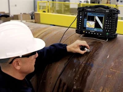 Um dos modos mais fáceis de realizar a inspeção em vasos de pressão é com a utilização do Phased Array, que por sua vez atua com transdutores comum grande número de cristais,que são pulsados de uma maneira ordenada para produzir uma varredura por completo da solda.